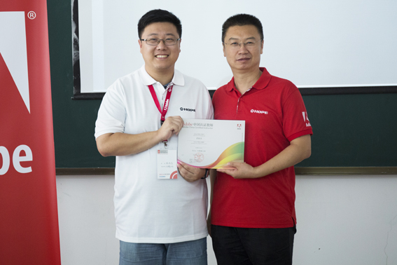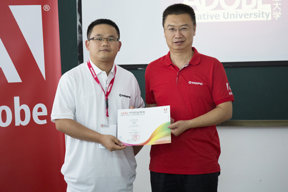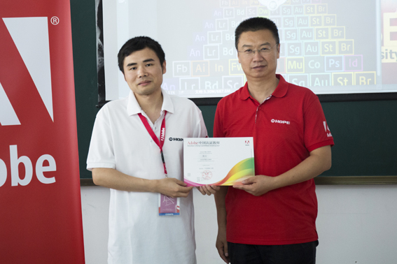 Adobe创意大学运维管理中心靳岩先生为武汉商学院的陈文老师颁发证书