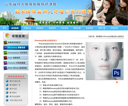 2015年 山东省成人高等教育特色课程《数字媒体实用人才培训系列课程》项目验收。该项目得到推广,被很多培训机构及教学单位共享。