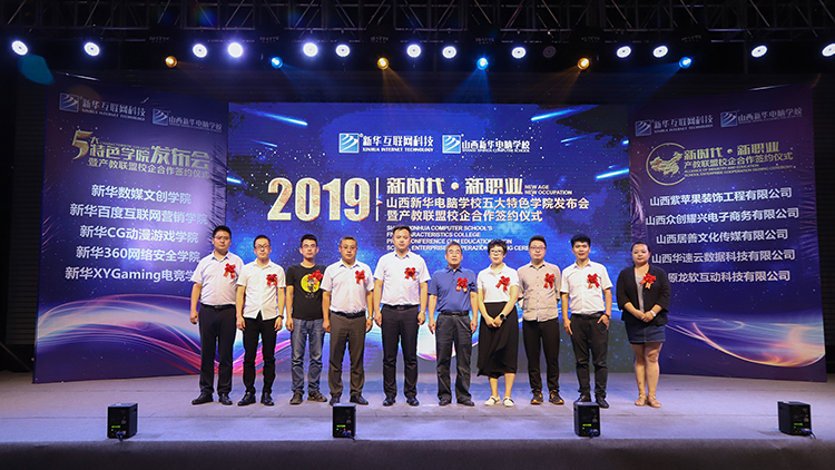 开启山西互联网教育教学新领域,引领山西职业教育发展新篇章。在全场的共同见证下,所有参会领导齐上台共同启动山西新华电脑学校“新时代•新职业”五大特色学院发布会暨产教联盟校企合作签约仪式,活动圆满结束。