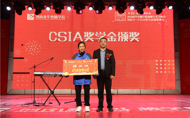 在晚会现场学院领导还为2020年度“新华·CSIA奖学金”精英奖、俊杰奖、英才奖的获奖学生进行了颁奖,鼓励学生努力学习专业技能,提高自我专业水平。相信有CSIA认证的一路护航,新华的学习们定会学有所成!
