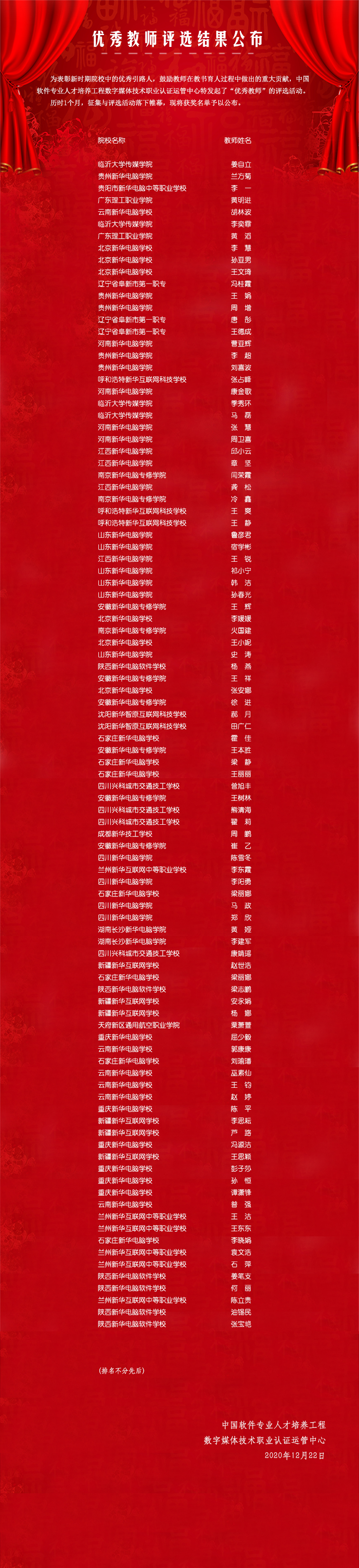 中国软件专业人才培养工程优秀教师结果公布