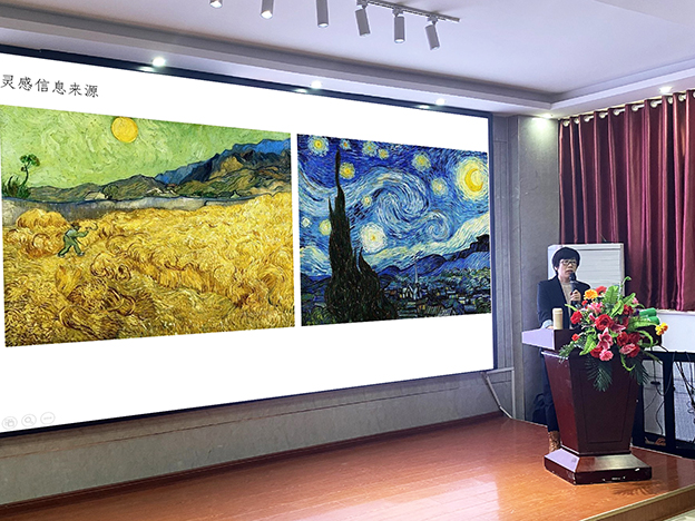 讲座中王老师介绍了在目前“互联网+”及“智能+”环境下的艺术相关行业作品,然后引入主题:让艺术伴我们成长。