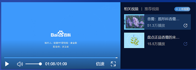 2、2016年与锐普PPT研究院合作,为百度公司秒懂百科项目制作PPT视频,制作内容有板齿犀、中国鸽子树、长白上人参、香薷、小蓟等40多个词条